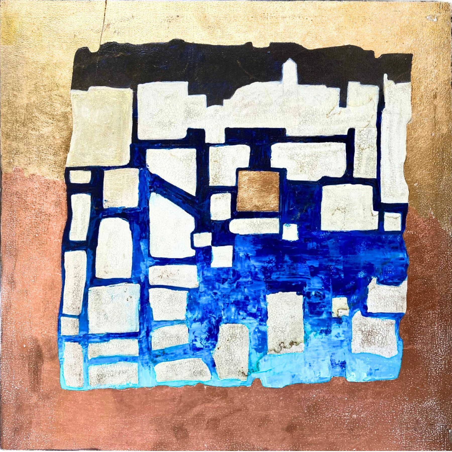 Technique: acrylic & gold leaf on wooden canvas