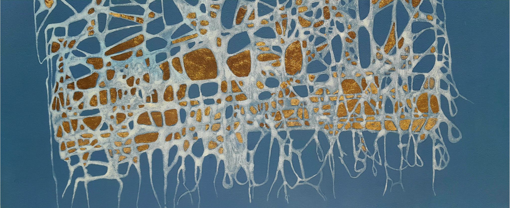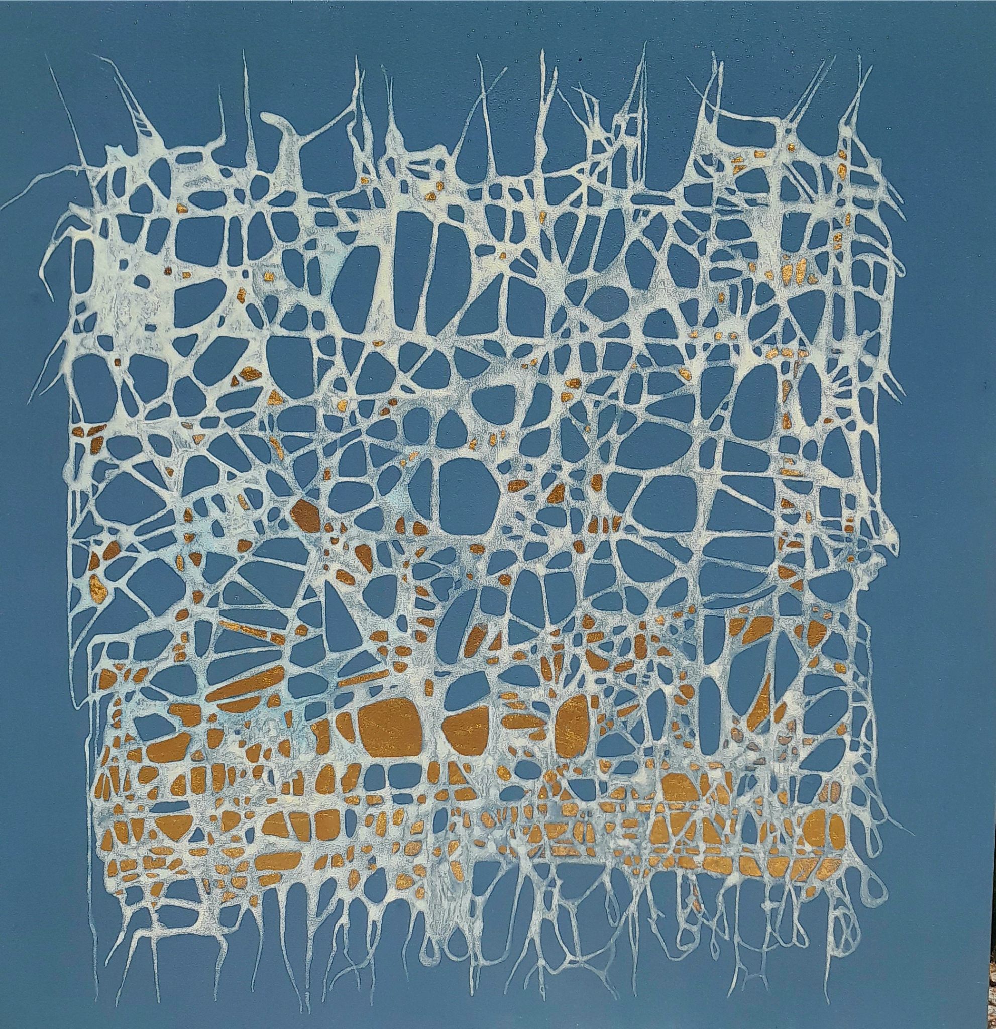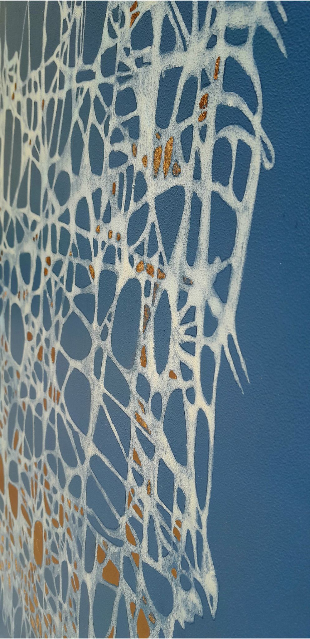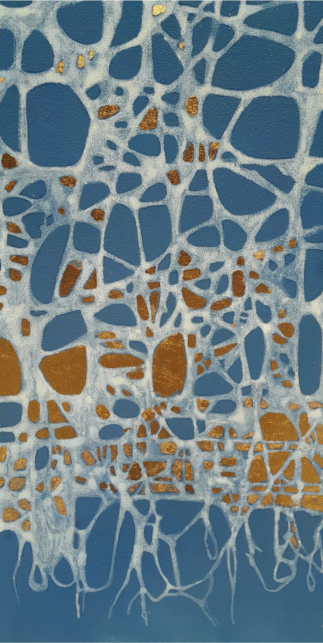 The pattern in the painting, uneven, full of contrasts and intricacies, reflects the nature of life. Like a web of threads, our experiences are complex, heterogeneous, full of unexpected turns. However, in this apparent chaos there is harmony and meaning that we can only see from perspective. Gold accents remind us that even in the darkest moments, light will always find a way to shine through.